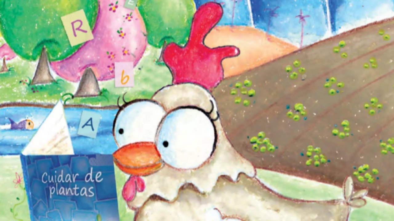 Este documento conta a história de Pipoca, uma galinha que aprendeu a ler e gostava muito de livros. Quando Juvenal recebeu uma herança de uma chácara, ele precisava cuidar de Pipoca. No local, Juvenal queria vender a terra, mas Pipoca convenceu-o a ler um livro sobre cuidar de riachos e reflorestar, o que melhorou a propriedade.